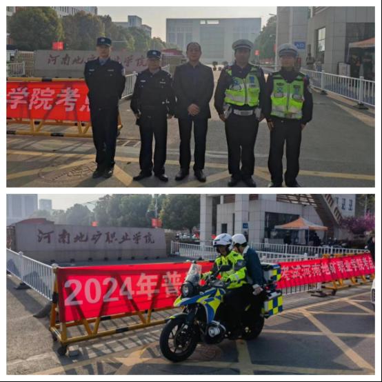 为给广大考生营造安全、舒适的考试环境,安全保卫组积极联络辖区派出所和属地交警。4月1日,大有路派出所派出警力到我校执勤,交警六支队七大队、铁骑二大队的交警在开元门口负责交通秩序维护以及救助。当天上午,两名考生没有携带身份证,十分着急,在现场执勤的开元工作人员和民警得知情况后,迅速以“绿色通道”形式,由铁骑带着学生赶赴大有路派出所办理了临时身份证明,两名考生顺利进入考场考试。