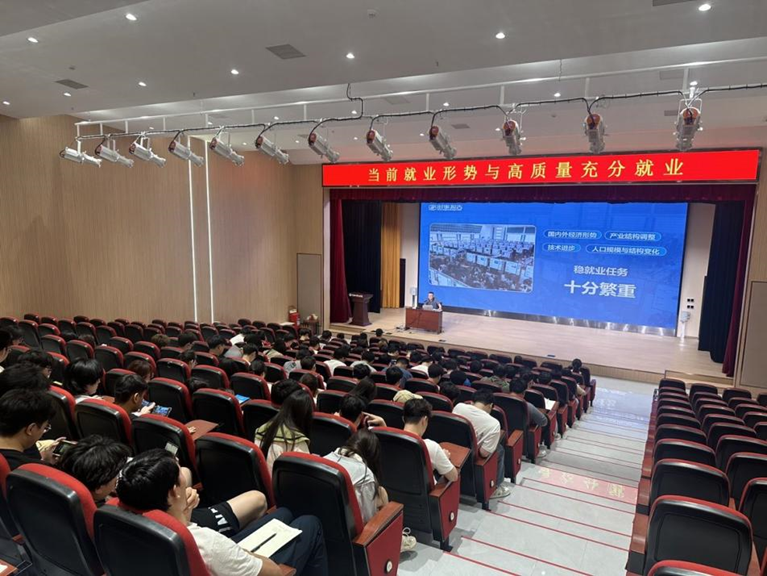 5月20日,副校长冯敏走进地矿工程学院,为学生讲授以《当前就业形势与高质量充分就业》为题的思想政治理论课。由地矿工程学院党总支书记李华伟主持,学院200多名学生到场聆听。