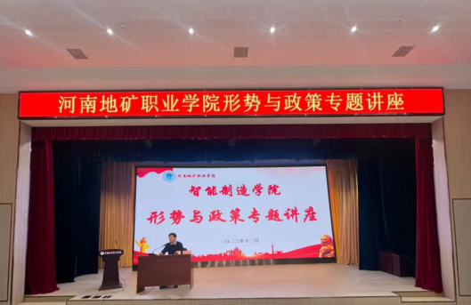 为深入学习贯彻习近平新时代中国特色社会主义思想、习近平总书记关于教育与国家安全的重要论述,全面贯彻落实党的二十大精神,充分发挥思政课启智润心、铸魂育人的功能,12月25日,校党委书记焦洪涛走进智能制造学院开展以《世界变乱交织 中国笃行担当》为主题的形势与政策专题讲座,本次专题讲座由智能制造学院党总支书记马瑾瑞主持,学院团总支书记、辅导员、青马班学员、入党积极分子、学生会干部、优秀团员等200余名师生参加学习。