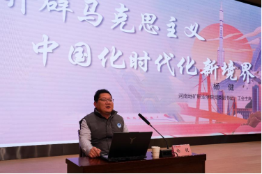 杨健首先介绍习近平新时代中国特色社会主义思想的重要性,再由生活中的点点滴滴为师生们讲述习近平新时代中国特色社会主义思想的内涵,然后由浅入深地为大家讲解习近平新时代中国特色社会主义思想创立和发展的时代背景。