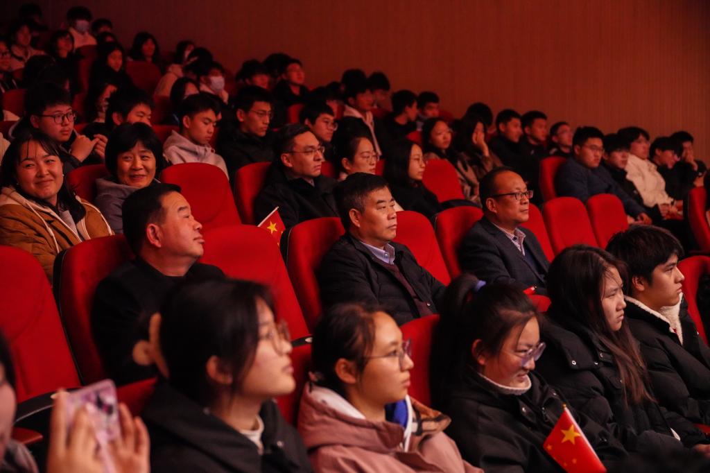 汇演期间,校党委书记焦洪涛,党委委员、纪委书记李明前,党委委员、副校长张红兵,团委书记吴颖、副书记宋佳音,智能制造工程学院院长娄阳、公共课教学部部长黄文伟、副部长孙彦萍,科技服务处副处长马瑞学,信息工程学院院长娄慧轩,信息工程学院书记张建华以及信息工程学院300余名师生代表到场观看演出。课程思政教学研究示范中心负责人黄文伟致辞。