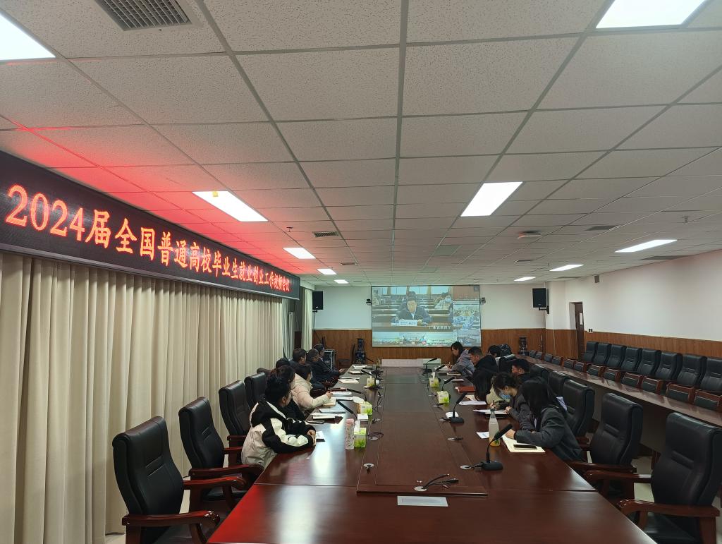 我校党委书记焦洪涛、副校长冯敏,招生就业处和各二级学院主要负责同志在行政楼411会议室参加视频会议。会议的目的是总结2023届高校毕业生就业工作经验,分析研判当前高校毕业生就业形势,促进2024届高校毕业生高质量充分就业。
