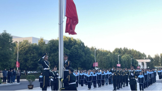 迎着东方的晨曦、怀着赤诚的诚意,伴随着斗志昂扬的国歌,鲜艳的五星红旗冉冉升起,参加仪式的全体师生们向国旗行注目礼,表达了对伟大祖国的崇高敬意。