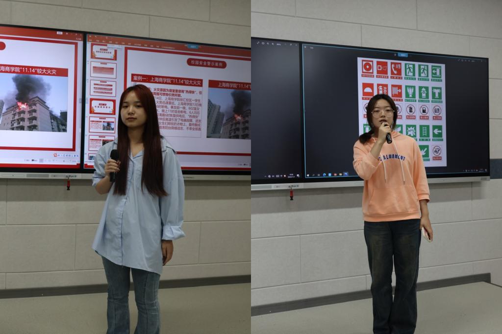 主题班会由辅导员白金风主持,以校园消防安全学习、消防知识快问快答、学生代表案例讲解等不同形式展开,既有视频案例记录分享,也有师生间互动交流。此次班会紧紧围绕“校园安全”主题,以校园消防安全为切入点,介绍了初期火灾发生时的灭火方式、自救方式及火情严重时的逃生技巧和灭火器的使用方式,同时列举了多起消防安全事故经典案例,以此警示广大学生注意消防安全。最后,两名学生代表用简洁明了的语言、惨痛而触目惊心的案例帮助同学们了解火灾的无情,领悟火灾防范的重要性,警醒同学们引以为戒,关注消防,珍爱生命。