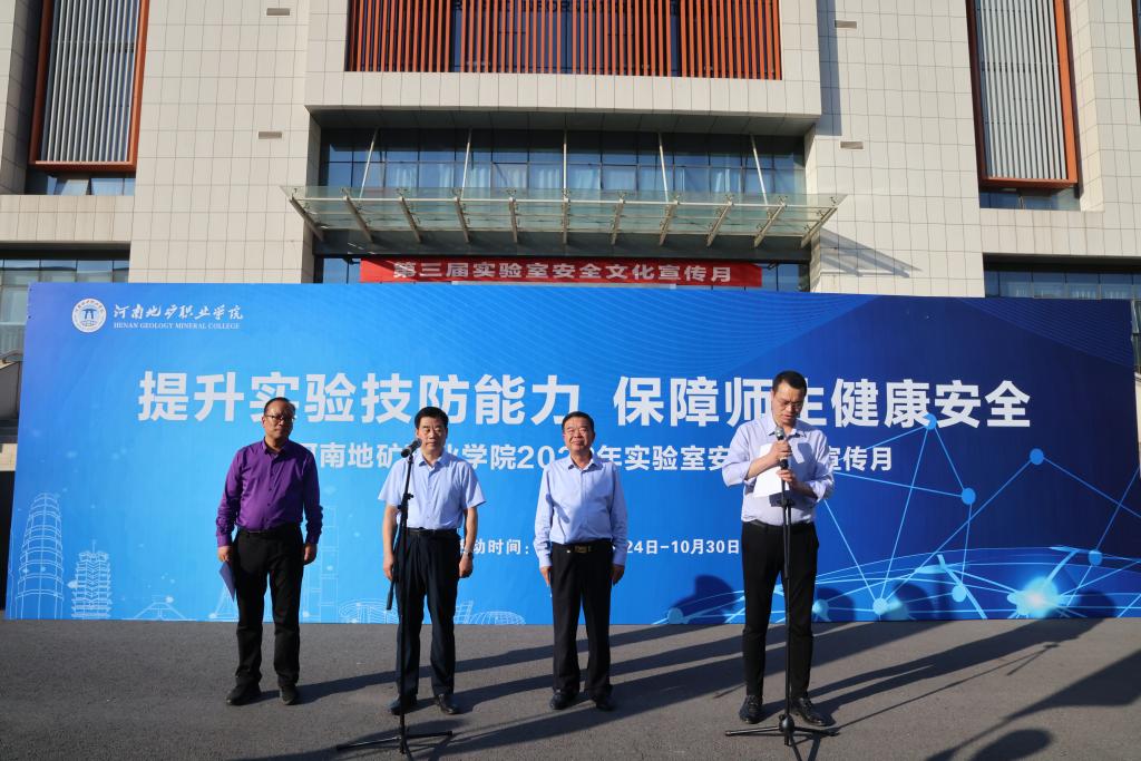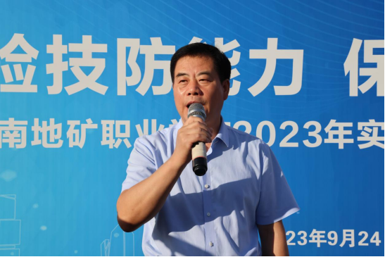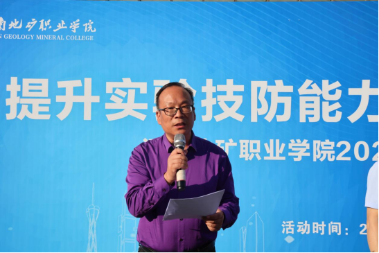焦洪涛宣布2023年河南地矿职业开元实验室安全疏散演练正式开始,各参演师生各就各位,听从指挥。