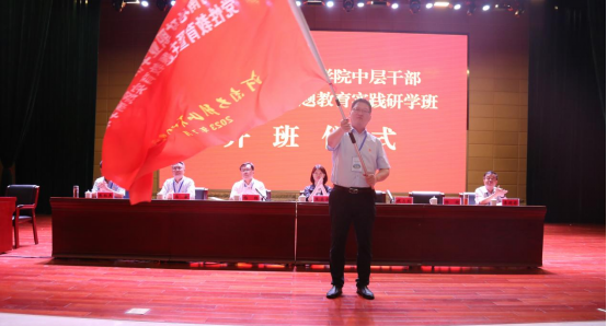 开班仪式在慷慨激昂的国歌声中拉开帷幕。开班仪式上,大别山干部学院党委委员、副院长祝月明致欢迎辞,对我校领导及培训人员表示诚挚的欢迎,并详细介绍了大别山28年红旗不倒的革命历史和大别山干部学院的课程体系、教学特色以及党性教育的大别山品牌建设情况。她希望地矿学院能够给予信阳经济社会发展、河南大别山干部学院的建设更多关心、关注和指导,并预祝培训班取得圆满成功。