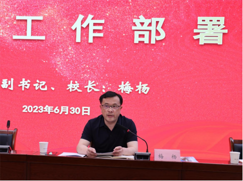 党委副书记、校长梅杨分别从制度机制建设、主题教育、意识形态和宣传工作、学生工作、就业工作、后勤保障等方面对假期和下一阶段工作进行部署和安排。他指出一要加强学习,理清思路,学习职业教育政策,学习先进院校好的做法,准确把握产业行业动态。二要提升站位,打开格局,不断提升开拓创新能力。三要端正作风,实干当先,动起来,干起来。四要克服惯性心理,补齐短板,扬帆奋蹄,比学赶帮,助推开元高质量发展。