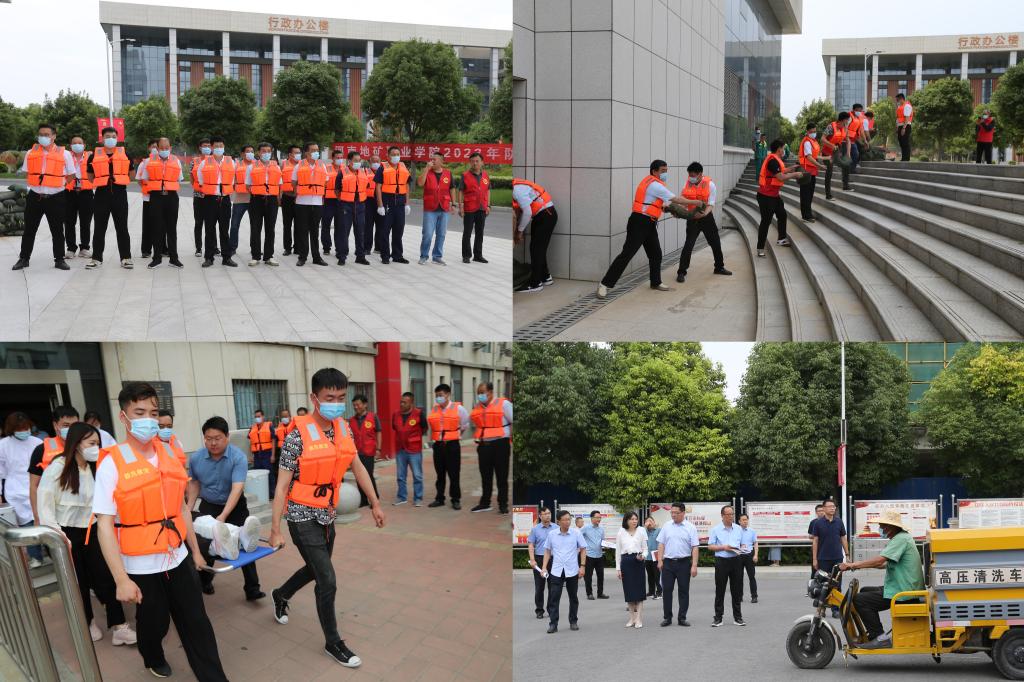6月16日下午,为进一步强化我校防汛救灾应急预案各项措施的落实,提高防汛应急决策和统一指挥工作效率,强化应对极端天气和紧急汛情的应急处置能力,提升师生员工的防灾抗灾和避险意识,最大限度地减轻灾害造成的损失,保障师生员工生命和财产的安全,我校组织开展防汛救灾应急演练。开元防汛救灾应急工作指挥部指挥长、党委书记焦爱萍,党委副书记、工会主席杨健,副指挥长、副校长张霖, 副校长冯敏,纪委书记李明前,副校长张红兵,指挥部成员单位负责人等参加演练。