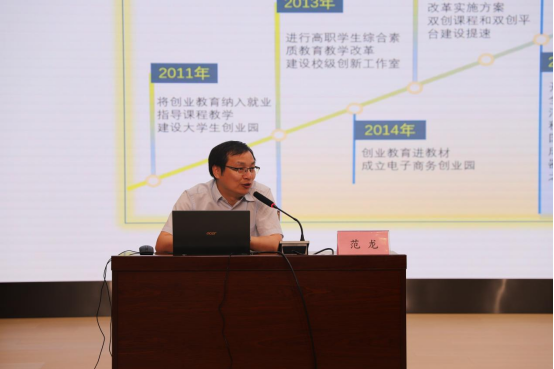 6月13日,我校邀请人社部青年就业创业指导“百人专家团”成员、中国国际“互联网+”创新创业大赛国赛评委、黄河水利职业技术学院范龙教授在多功能报告厅开展了《“互联网+”大赛介绍、赛事解析及项目来源》专题讲座。党委副书记杨健、各系部主任和200余名创新创业大赛项目团队师生参加,讲座由团委书记胡晓光主持。范龙教授从大赛简介、参赛过程及注意事项、大赛报名要求、大赛项目的来源四个方面进行讲解,讲座深入浅出,内容丰富,效果良好。
