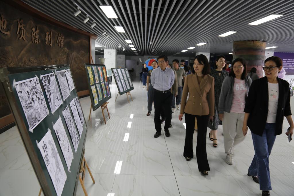 党委书记焦爱萍与老师同学们一起走进展厅,欣赏一件件风格各异、个性鲜明、极具视觉冲击力的作品。 她向筹备组织本次作品展的老师和同学们表示感谢,向各位参展的毕业生表示祝贺!她表示:此次作品展有水平、有特色、有亮点,既是学生学习成果的展示舞台,也是对环艺设计专业教改工作的一次全面检验和学生技能水平的集中体现,激发了学生的创造力和学习热情,活跃了校园艺术文化氛围,达到了以展促教、以展促学的目的。 党委书记焦爱萍希望师生在下一步创作中:一要进一步创作“红色作品”,弘扬红色精神。发挥环艺专业特长,通过艺术设计使红色精神充满感召力,传承红色基因,坚定理想信念,激发同学们将小我融入大我,青春献给祖国。二要进一步融入“地矿文化”,彰显办学特色。紧密结合我校地矿类专业特色,将技术与专业相结合,充分发掘自身潜力,创造地矿元素明显、主题立意新颖的作品,凸显我院办学特色。