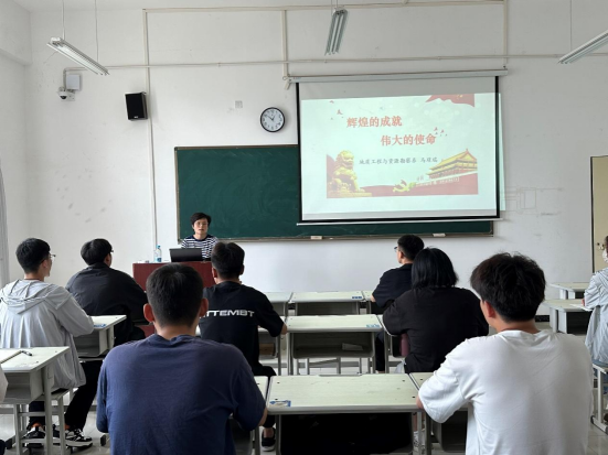 5月12日,地质工程与资源勘查系党支部书记马瑾瑞在一号教学楼210教室,以“辉煌的成就,伟大的使命”为主题,为本支部4名党员发展对象和37名入党积极分子上党课。