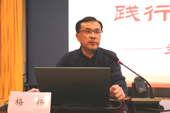 5月10日下午,我校举办学习贯彻习近平新时代中国特色社会主义思想主题教育专题党课,党委副书记、校长梅杨以《重温百年党史 践行为民使命》为题讲授专题党课。组织部长、行政工作党支部书记包兴祜主持,开元办公室、教务处、教育教学研究室、信息中心、地质矿产勘查系、地质工程与资源勘查系党员代表出席。