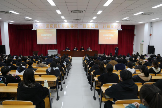 2月27日,我校隆重召开“阿里云”冠名班开班仪式。校长梅杨、河南唐砚教育科技有限公司董事长王树杰、阿里云培训中心全国高教业务负责人冯子仪、阿里云河南分公司副总经理朱彦杰出席开班仪式,校长办公室、教务处、学生处、招就办、电子及信息工程系负责人,教师、辅导员代表及“阿里云班”全体学员参加仪式,仪式由副校长张霖主持。