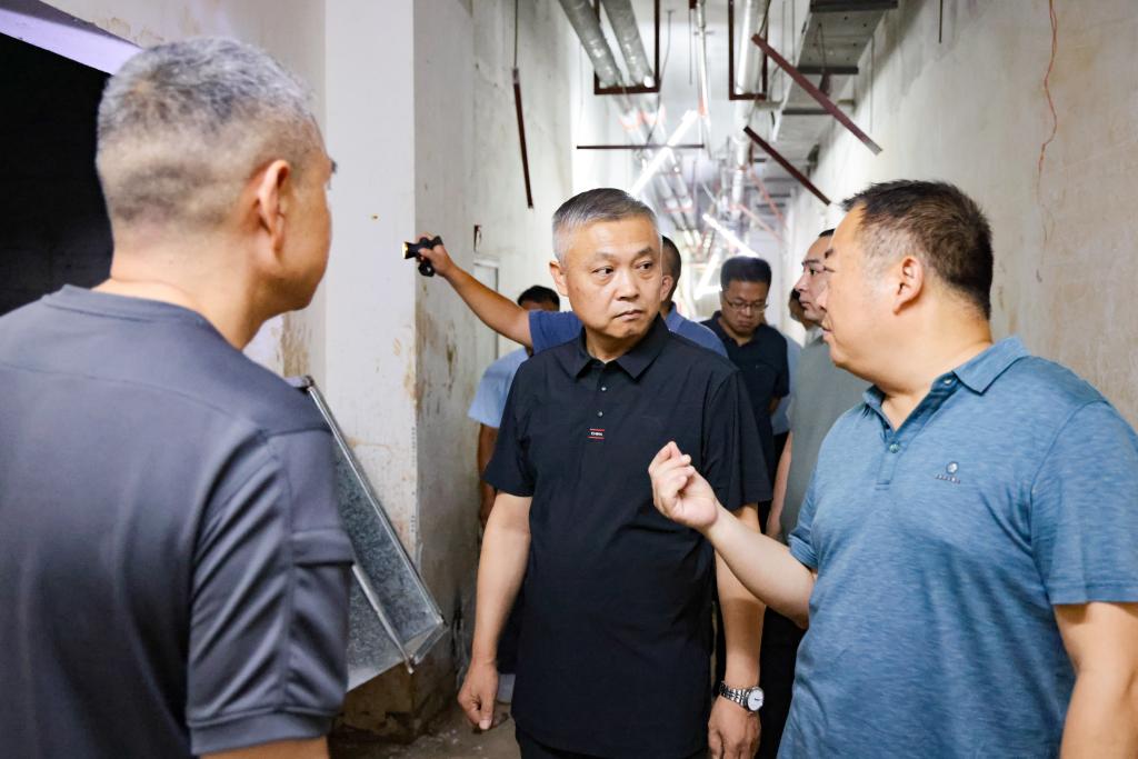 刘玉宾先后查看了图文信息楼的防汛物资仓库、一站式综合服务中心、中心机房等重点防汛区域。