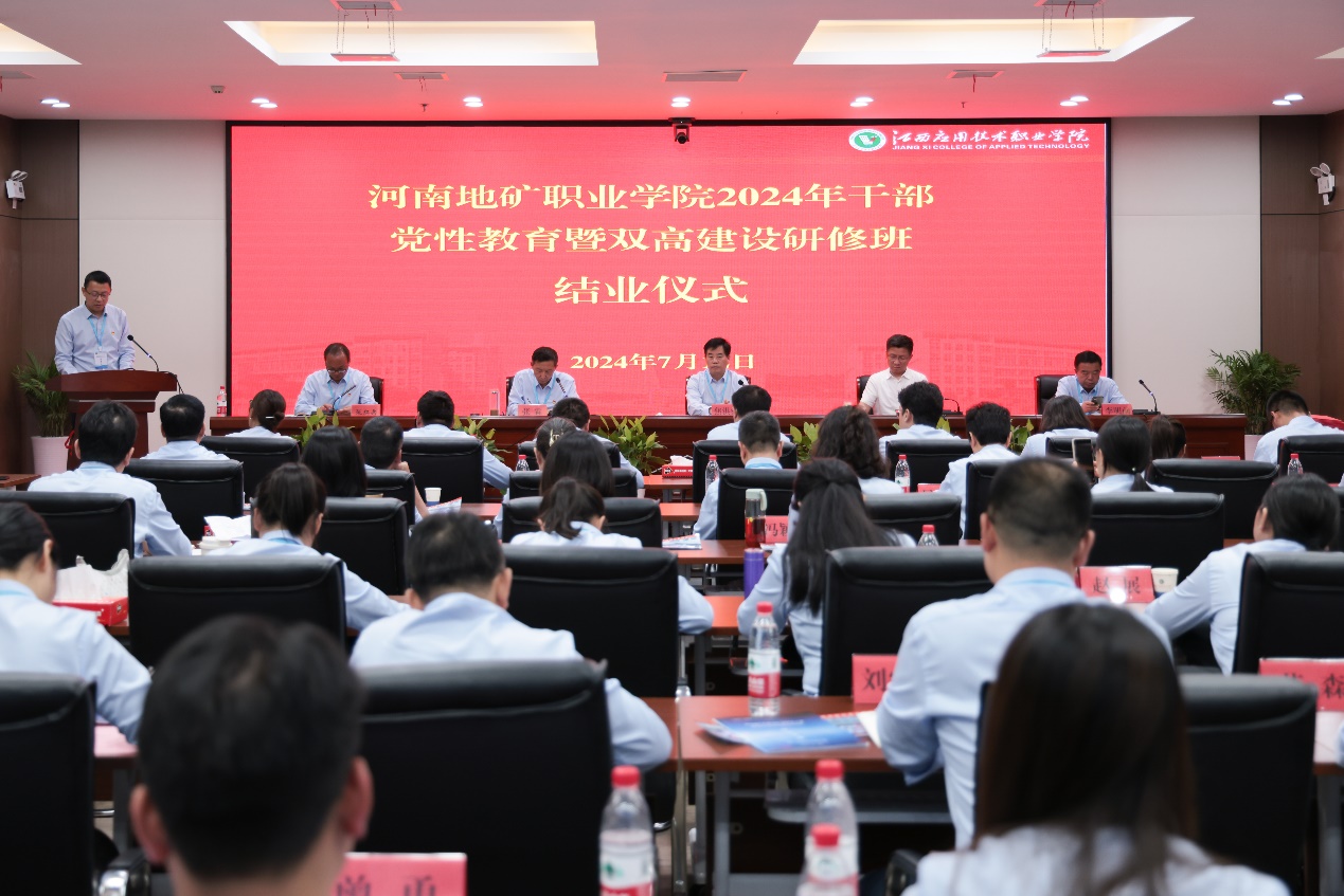 7月12日,我校2024年干部党性教育暨双高建设研修班结业仪式在江西应用技术职业学院黄金校区多功能报告厅举行。我校党委书记焦洪涛出席结班仪式并作总结讲话,江西应用技术职业学院党委副书记、校长徐志峰,我校纪委书记李明前、副校长张红兵出席仪式,研修班全体学员参加仪式。仪式由副校长张霖主持。