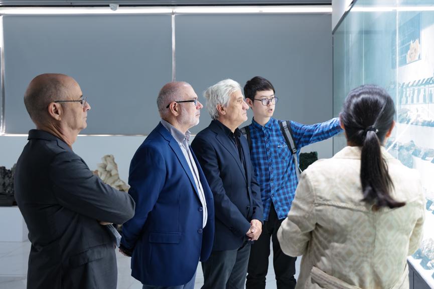 教授一行还参观了我校地质陈列馆。意方教授们对我校的校园环境和地质特色给予高度赞赏。他们漫步校园,感受着我校独特的文化氛围;惊叹于丰富的矿石标本和地质研究成果,对我校在地质领域的教学与研究连连称赞。