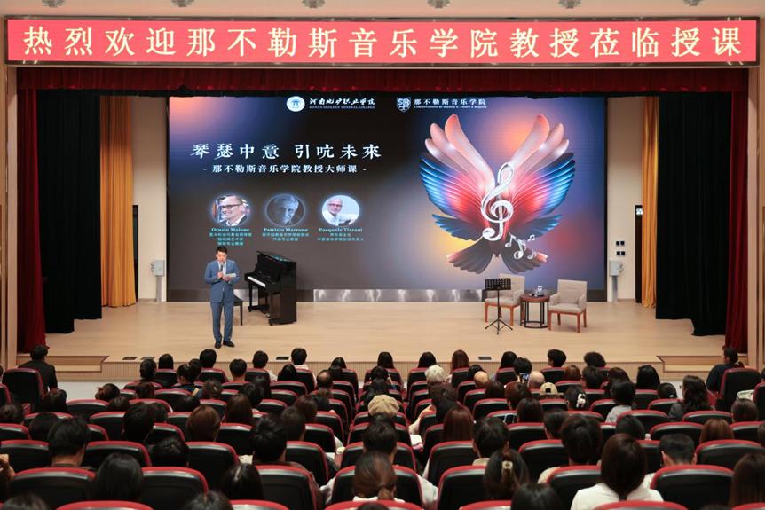 10月28日,意大利那不勒斯音乐学院教授大师课在我校多功能报告厅举办。我校副校长张红兵出席活动,建筑与艺术设计学院院长潘宏雨、副院长冯颖俊、团总支书记靳楠参加活动。