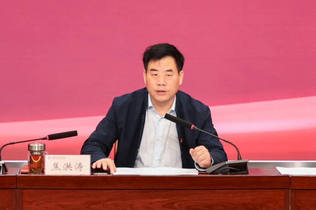 3月27日下午,我校2025年全面从严治党工作部署会在第二报告厅举行。党委书记焦洪涛出席会议并讲话,纪委书记李明前作纪检监察工作报告,党委领导班子成员以及全体副科级以上领导干部参加会议,会议由校长刘玉宾主持。