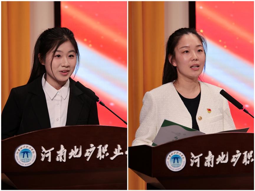 宣传统战部、学生工作部、团委、教务处、招生就业处、体育部负责人分别宣读“领航篇、明礼篇、尚技篇、展志篇、乐学篇、奉献篇”六大篇章受表彰名单,涵盖先进集体、先进个人、国家奖学金、国家励志奖学金、河南省高等职业教育技能大赛、全国大学生职业规划大赛河南省赛银奖等学生荣誉。