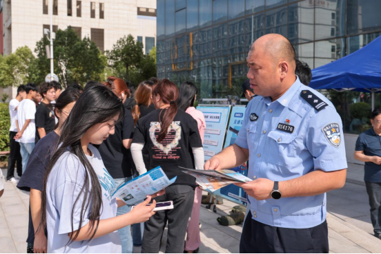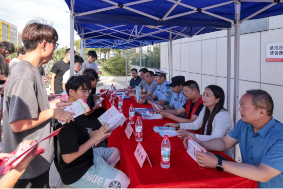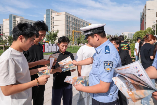 活动现场,焦洪涛与属地部门工作人员亲切交流,并详细询问目前有关校园安全情况。各部门向学生发放安全知识手册,并讲解关于政治安全、人身安全、财产安全、交通安全、宿舍安全、食品安全、消防安全、实训室安全等方面的安全知识,学生们积极踊跃咨询。