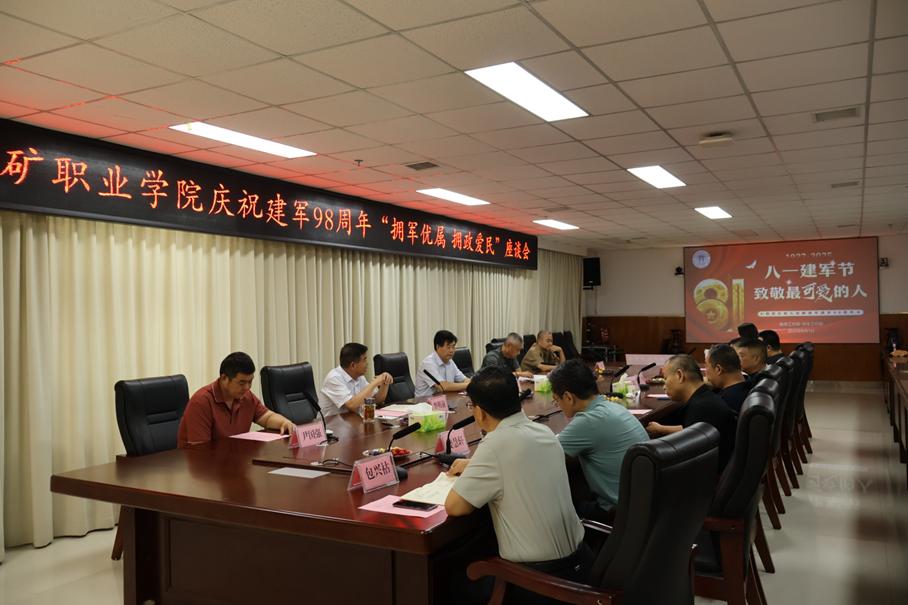 为庆祝中国人民解放军建军98周年,弘扬“拥军优属、拥政爱民”的光荣传统,不断增强退役军人的获得感、荣誉感、幸福感。8月1日,我校在411会议室组织召开庆祝建军98周年暨“八一”拥军优属、拥政爱民座谈会,领导班子成员、我校在职退役军人代表及部分中层干部参加会议,会议由党委副书记、校长刘玉宾主持。