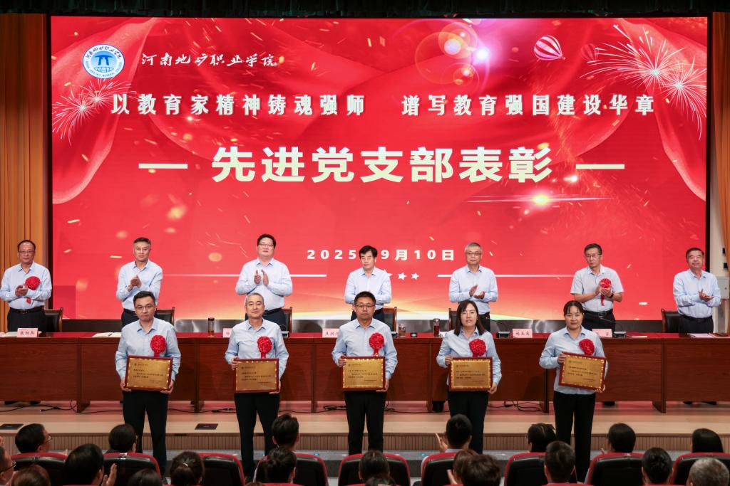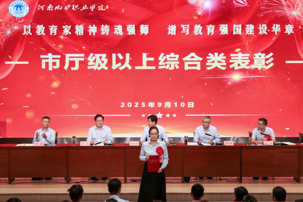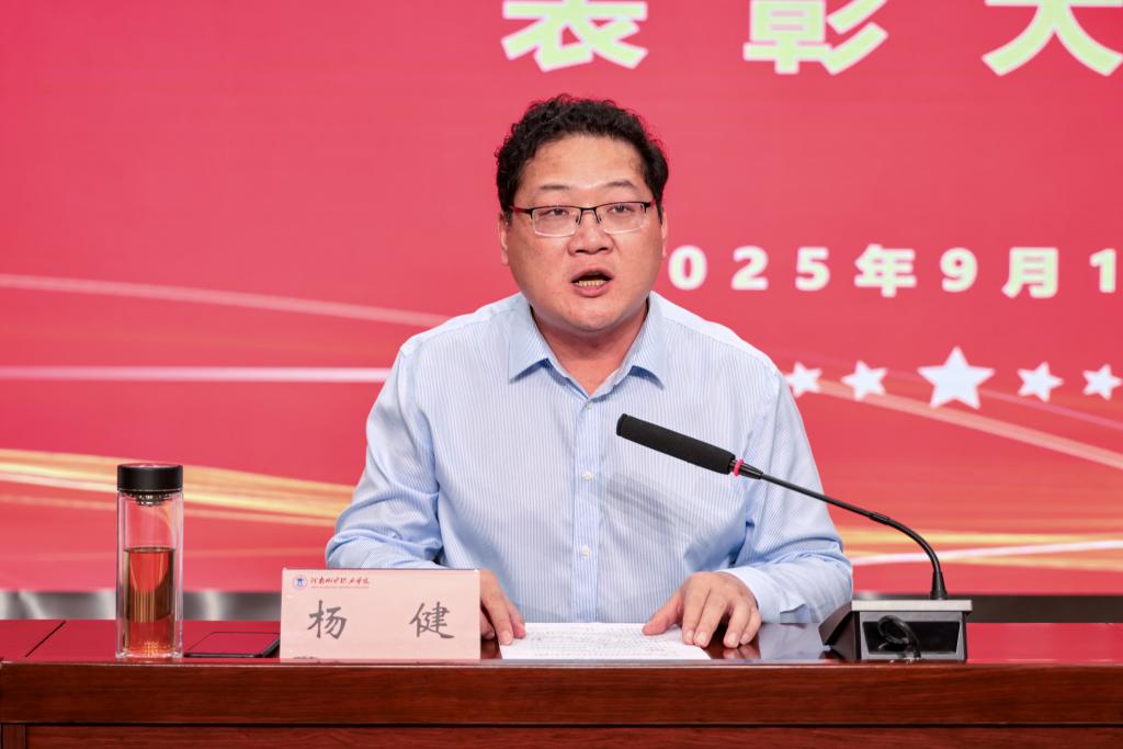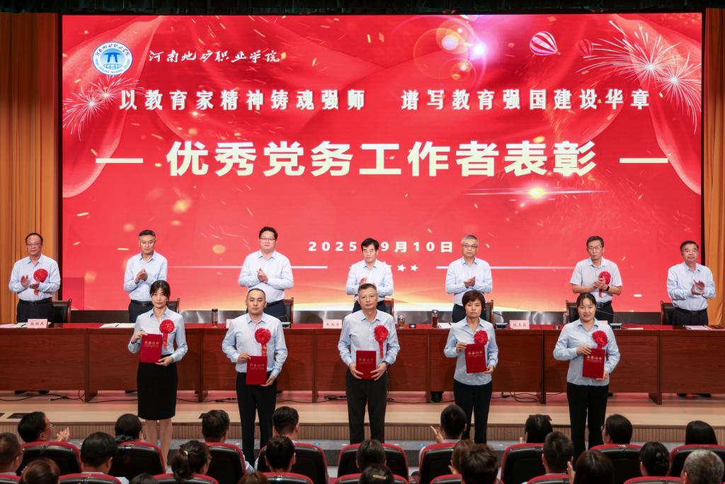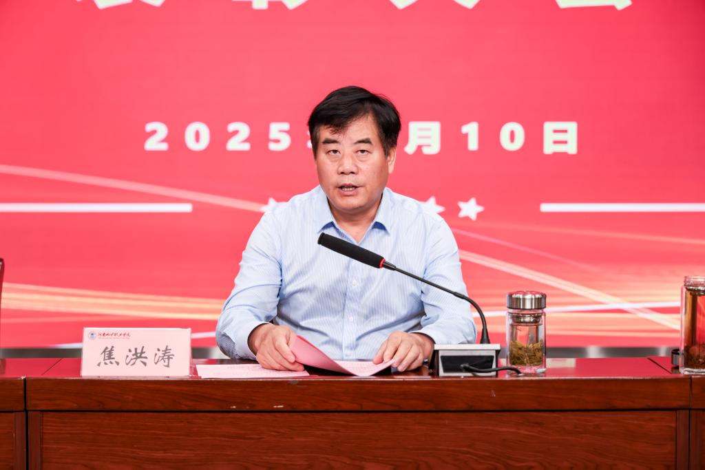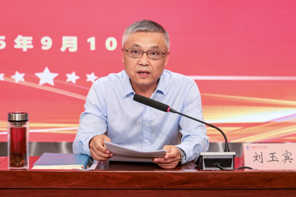 9月10日,我校在勤奋楼报告厅以“以教育家精神铸魂强师,谱写教育强国建设华章”为主题召开庆祝第41个教师节暨表彰先进大会。校党委书记焦洪涛出席会议并讲话,校领导杨健、张霖、冯敏、李明前、张红兵出席会议,全体教职工参加会议。会议由党委副书记、校长刘玉宾主持。