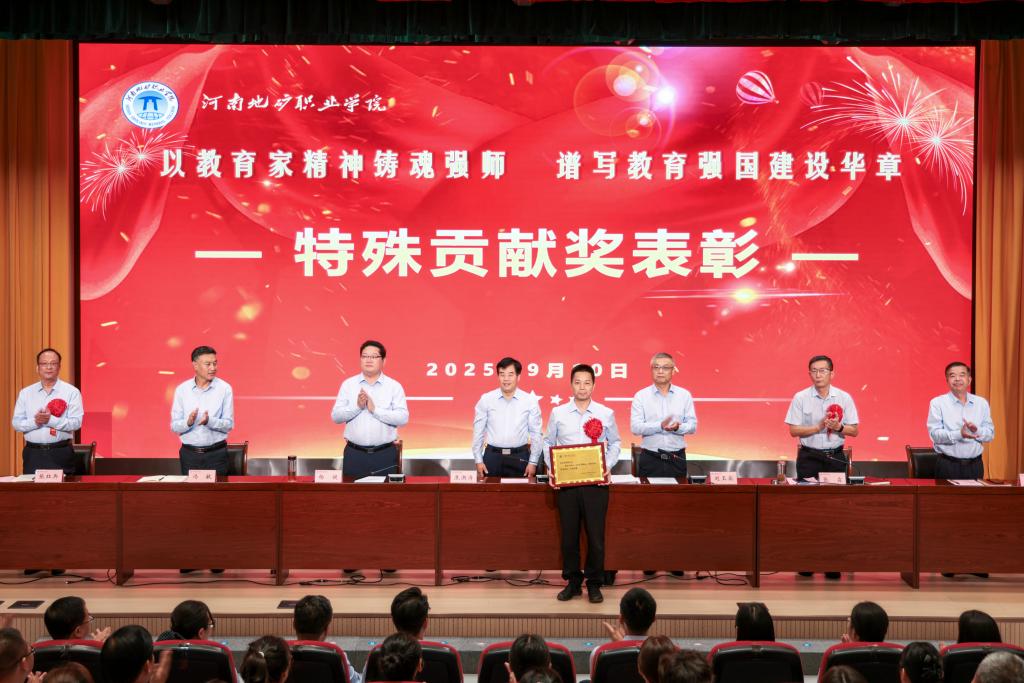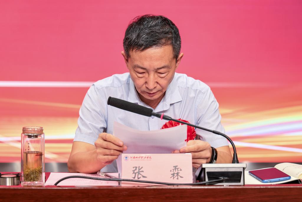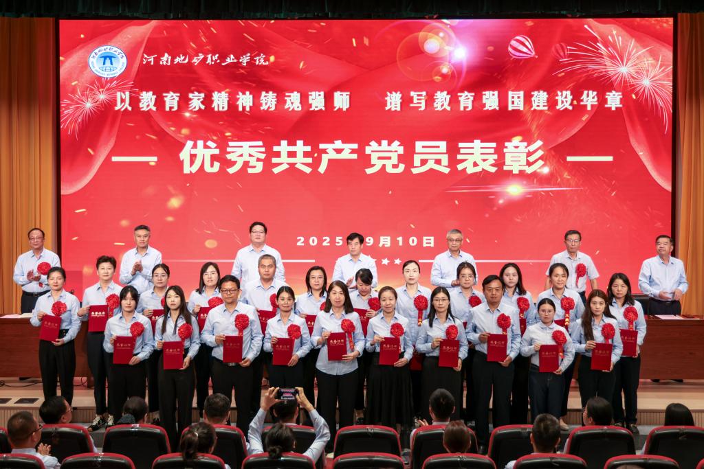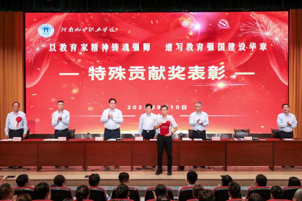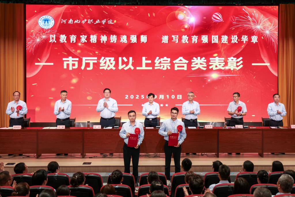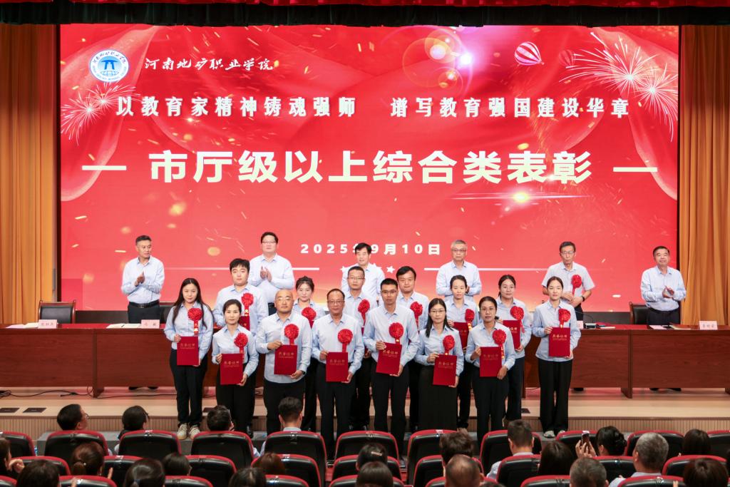 9月10日,我校在勤奋楼报告厅以“以教育家精神铸魂强师,谱写教育强国建设华章”为主题召开庆祝第41个教师节暨表彰先进大会。校党委书记焦洪涛出席会议并讲话,校领导杨健、张霖、冯敏、李明前、张红兵出席会议,全体教职工参加会议。会议由党委副书记、校长刘玉宾主持。