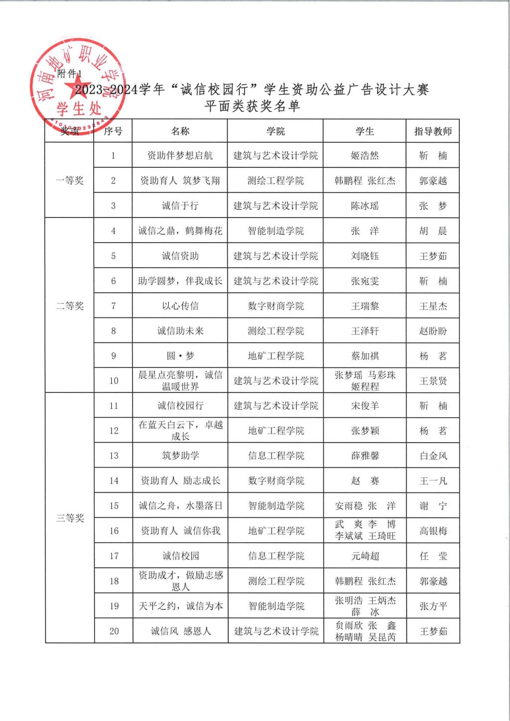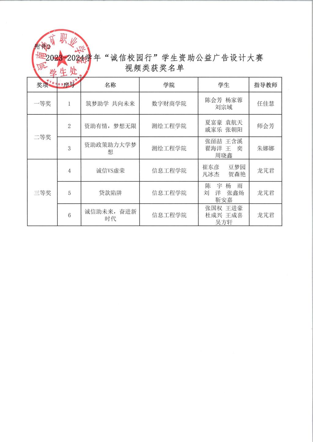 为深入学习贯彻习近平新时代中国特色社会主义思想,认真落实党的二十大关于“完善覆盖全学段学生资助体系”的重要决策部署,进一步发挥“资助育人”在“立德树人”根本任务中的关键作用,我校举办了2023-2024学年“诚信校园行”学生资助公益广告设计大赛。