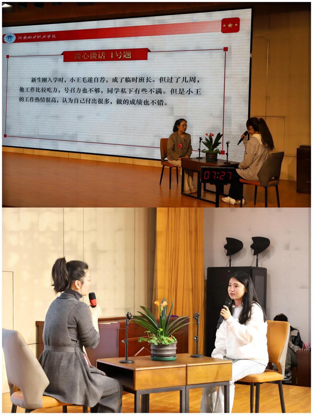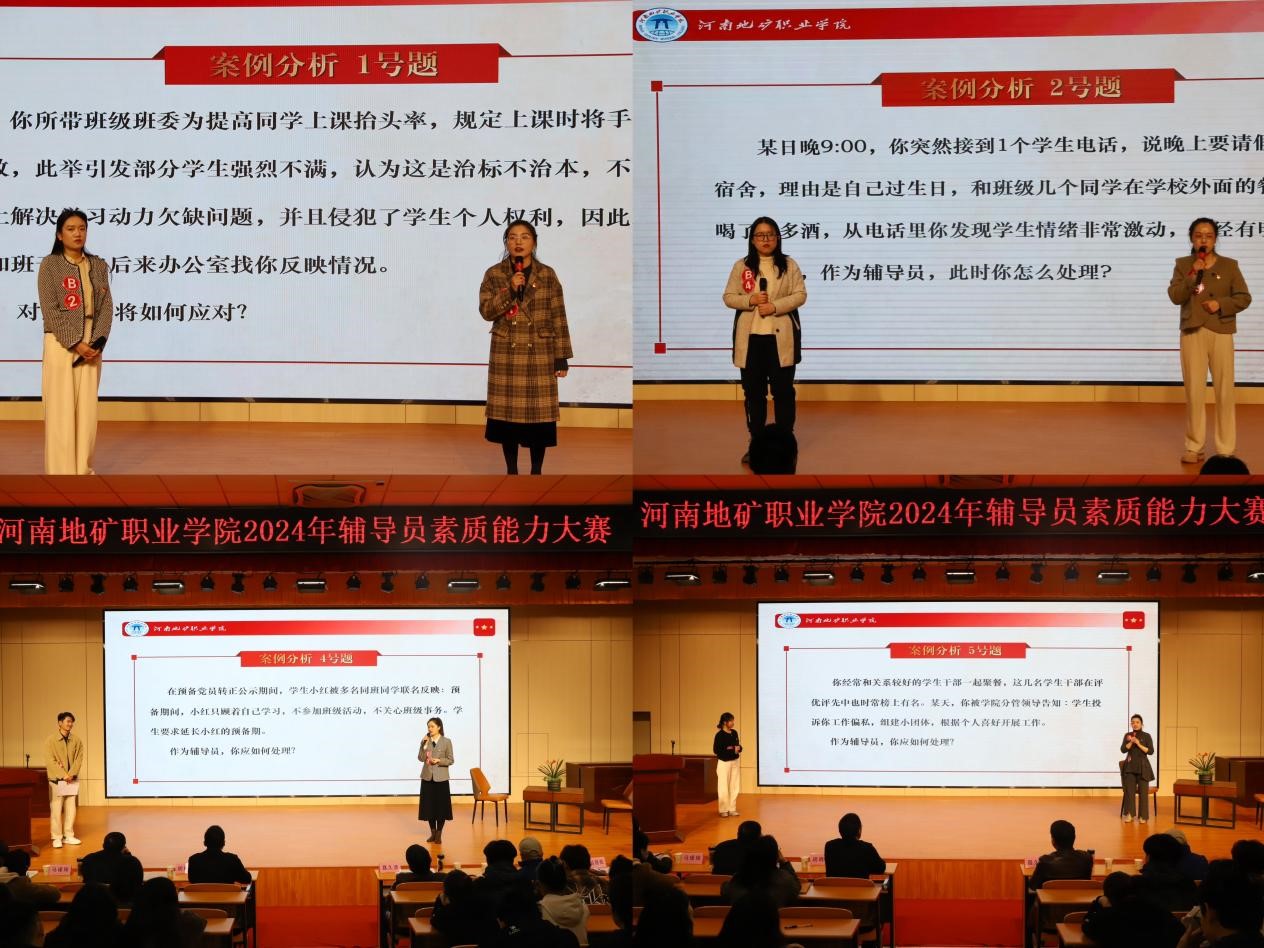 本次决赛分为“案例研讨”和“谈心谈话”两个环节。其中“案例研讨”环节以“你提问,我回答”的形式比拼,选手两两一组,围绕案例进行分析问题、研讨对策、总结规律,由表及里、层层剖析,由浅入深、拾级而上、精彩对垒让比赛现场掌声雷动。