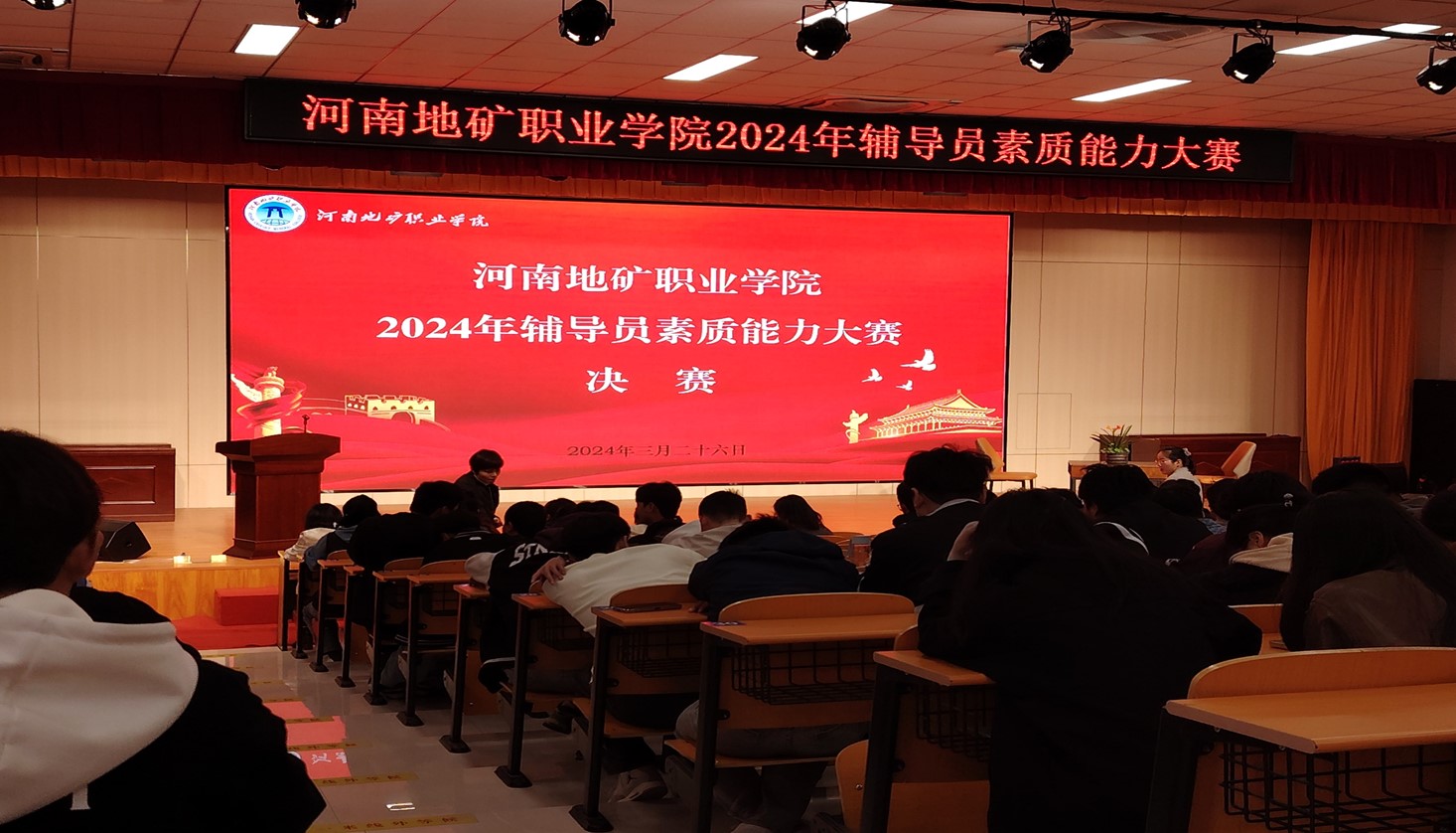 为深入学习贯彻党的二十大精神,全面贯彻落实全国教育大会、全国高校思想政治工作会议精神,不断提升我校辅导员理论水平、专业素养和综合素质能力,促进辅导员队伍专业化、职业化、专家化发展。3月27日下午,我校2024年辅导员素质能力大赛决赛在合堂二举行,经过初赛选拔进入决赛的10名辅导员展开激烈角逐。学生工作部部长、各学院党总支书记、团总支书记及全体辅导员观摩了比赛。