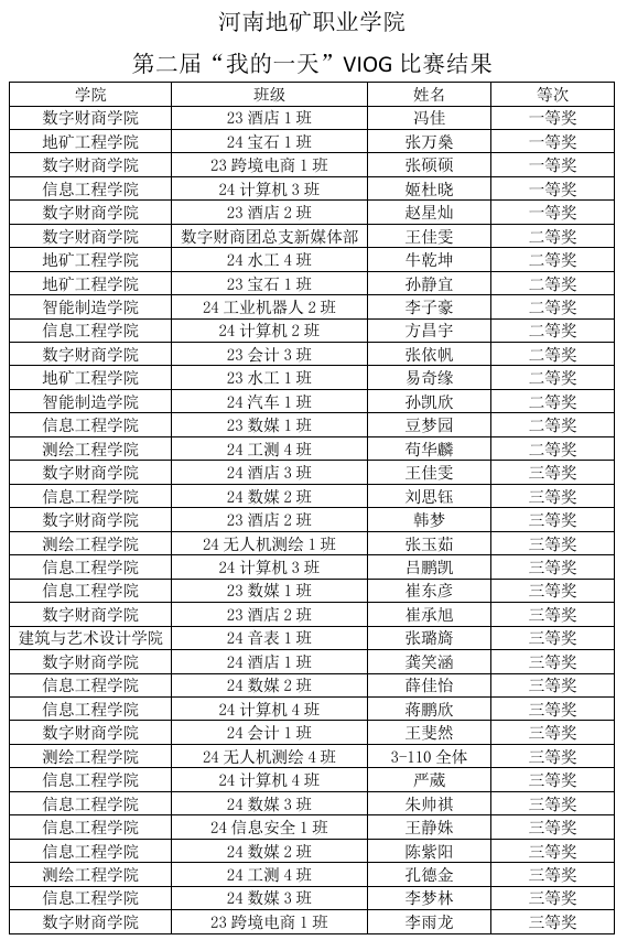 由教务处组织开展的第二届“我的一天”视频网络日志(VIOG)比赛圆满结束,本次比赛旨在宣传我校职业教育改革成果,弘扬劳动光荣、技能宝贵的时代风尚,推动校园文化建设,展现学生青春风采。比赛共征集到来自各学院的原创参赛作品90余份。经校内评委从主题、创意、剪辑技术、感染力等维度综合评选,最终评选出一等奖5名、二等奖10名、三等奖20名。