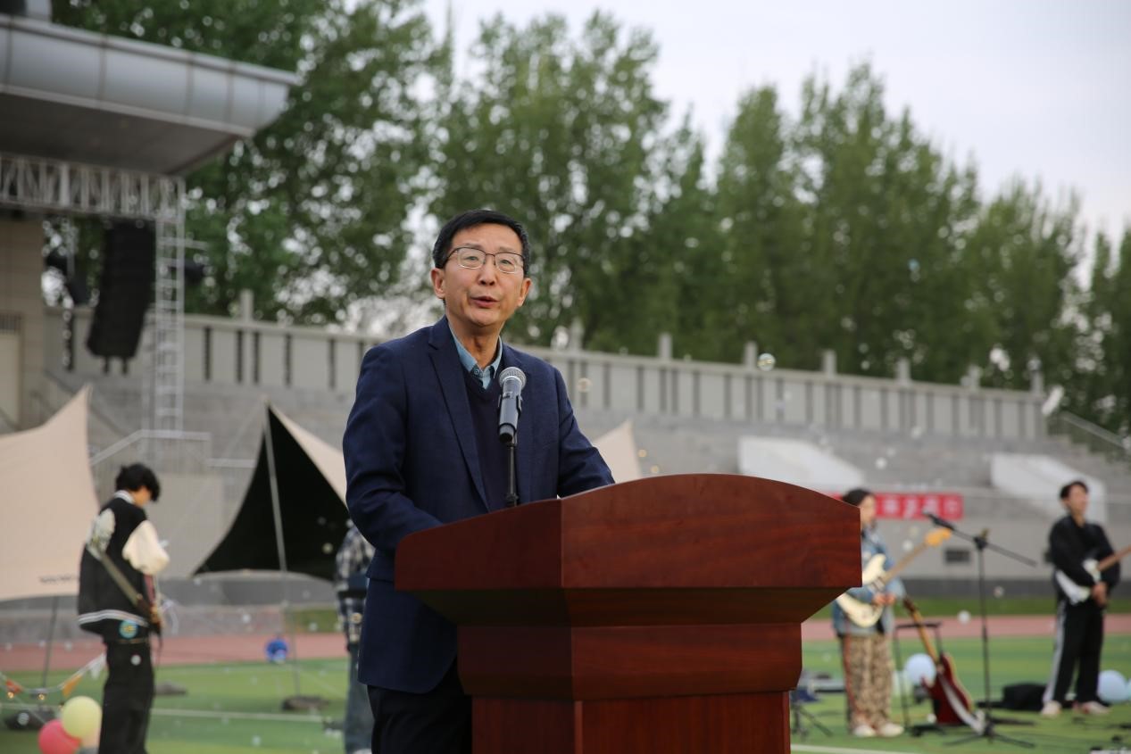 校党委书记焦洪涛,校领导杨健、张霖、冯敏、李明前、张红兵与师生共同观看音乐节。