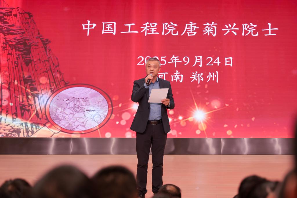 刘玉宾致辞,他代表开元对唐菊兴院士的到来表示热烈欢迎。并高度赞扬了唐菊兴院士在地质科学领域取得的卓越学术成就,以及在教书育人方面作出的杰出贡献,并号召全体学员学习他开拓创新、诲人不倦的崇高精神,为河南地质事业和开元高质量发展贡献智慧与力量。(通讯员:王英好 夏彬涵)