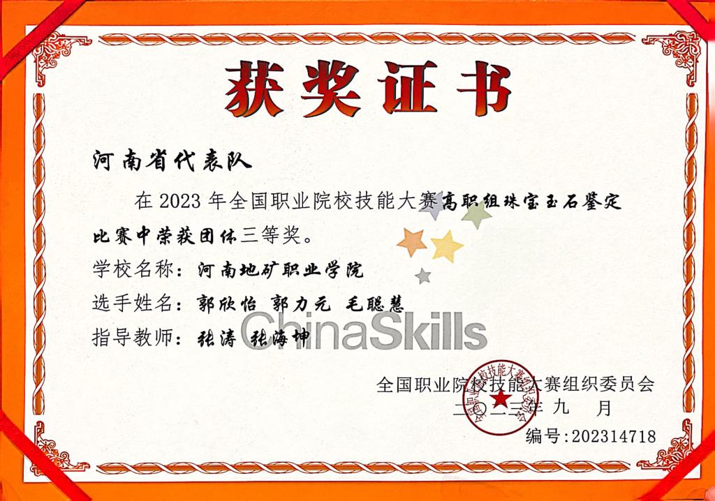 我校地矿系宝玉石鉴定与加工专业代表队荣获全国职业院校技能大赛三等奖