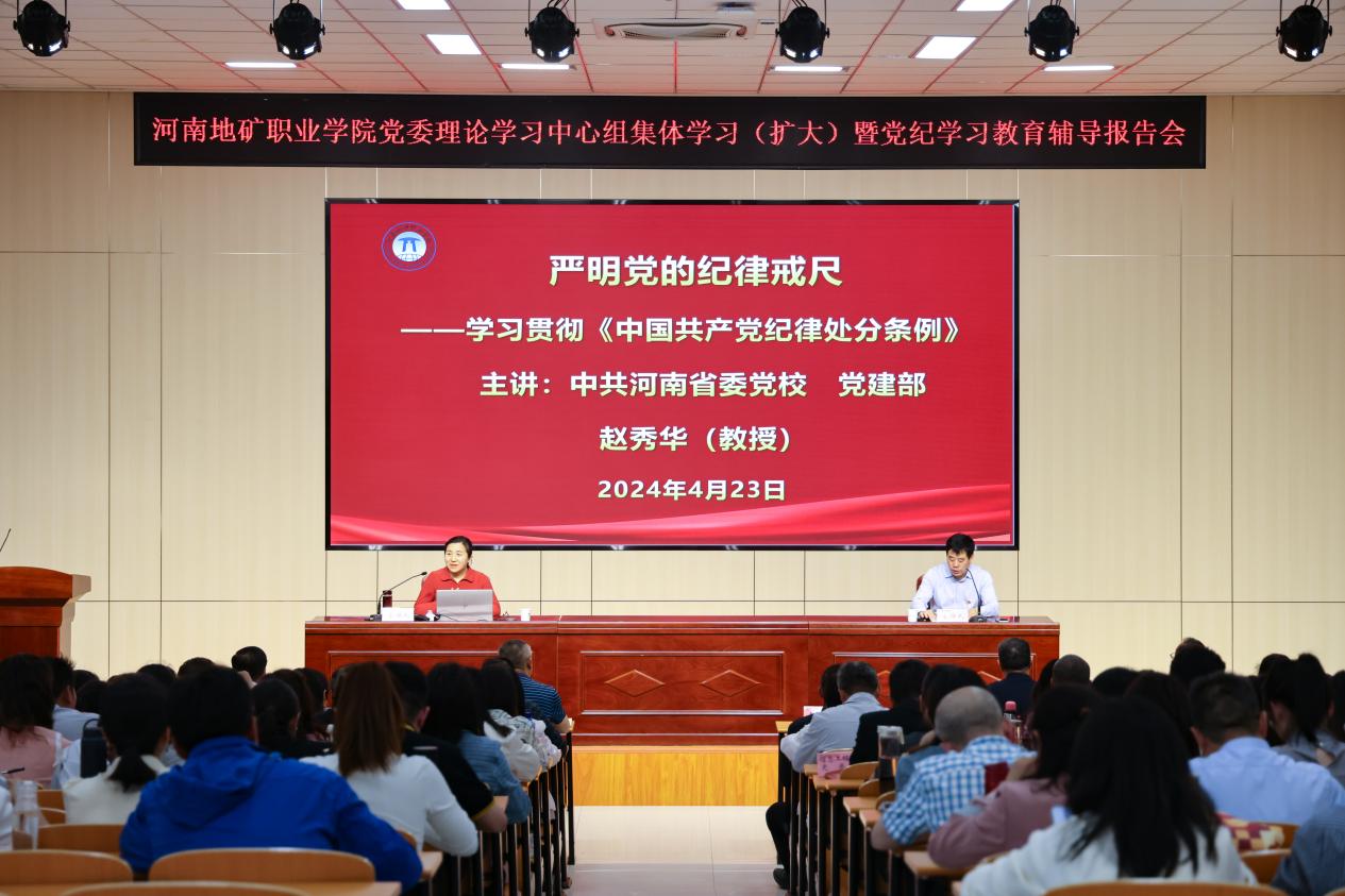 4月23日下午,我校在一号教学楼合堂教室召开开元党委理论学习中心组集体学习(扩大)暨党纪学习教育辅导报告会,专题学习新修订的《中国共产党纪律处分条例》。报告会特别邀请中共河南省委党校党建教...