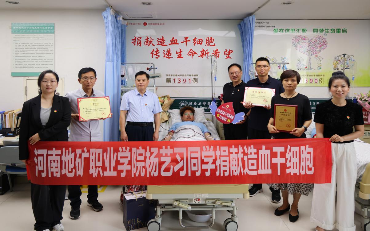 6月19日,校党委书记焦洪涛一行来到河南省肿瘤医院,慰问我校首位成功捐献造血干细胞志愿者、郑州市第477例、河南第1391例非血缘关系造血干细胞捐献者杨艺习同学。河南省红十字会党组书记、常务副会长秦高亭、河...