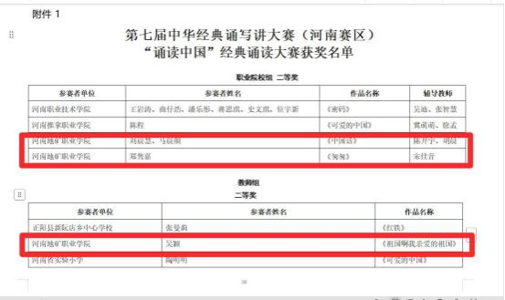 近日,河南省教育厅公布第七届中华经典诵写讲大赛(河南赛区)“诵读中国”经典诵读大赛评选结果。在激烈角逐中,我校表现出色,斩获职业院校组二等奖2 项、教师组二等奖 1项,充分彰显了学院 师生对中华经典文化...